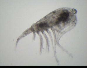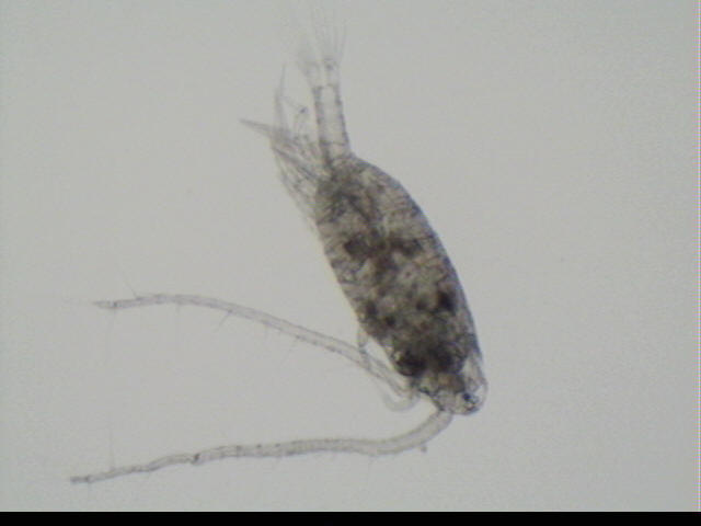 After S. oregonensis molts to the first copepodid stage, it can filter feed on the same size class of particles( 100-800µm³) as the adults(McQueen, 1970; Comita and McNett 1976).The copepod prefers larger phytoplankon(McQueen, 1970). Richman(1966) showed that S. oregonensis exhibited it maximum ingestion rate in food concentrations of 25 000-50 000 cells ml‾¹, ingestion rate declined dramatically. Skistodiaptomus oregonensis may be adaped to feeding on large cells in high concentration, and would be at a feedin disadvange in lakes of very low productivity.